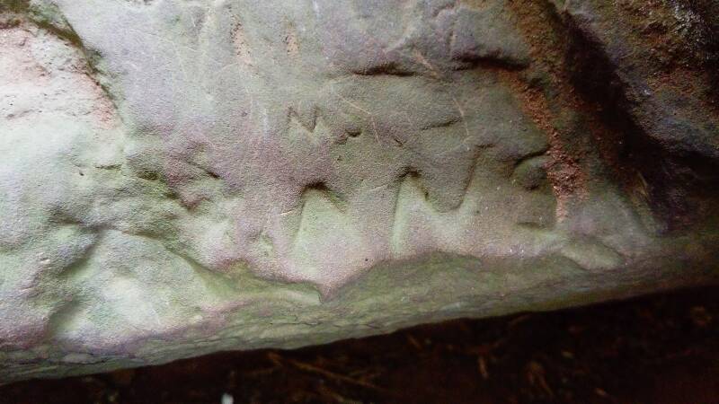 Photo below: what appears to be a serpent-carving located in one of the chambers in St Constantine’s Cells. This carving bares similarity to the possible serpent carving I found near Hodge Close in the Lake District, and also bares similarity to for example the serpent carving on the Aberlemno 1 or Aberlemno Serpent Stone, a Pictish stone imbued with Pictish symbolic or alphabetical (or a combination of the two) - language; and it bares a similarity to the serpent depiction on one of the megaliths on Signal Hill in Arizona, discussed in article 95: (the article published before this one) on this website. The serpent likely connects to the presence of the river outside of the caves, and to the symbolic connection between water and serpents, or the serpent carving may connect to the concept of “vision serpents” which give wisdom and spiritual insight to those visiting the Otherworld on a shamanic or shamanic-like journey. The presence of this serpent carving could therefore indicate that this place was a place where one could “see” through to the other realms, and would therefore be connected to shamanic or to shamanic-like practices. The serpent is such a common symbol and connects to a wide range of important universal concepts and spiritual themes, that it is difficult to say what precisely it represent here, but I am confident that it connects to one of the aforementioned possibilities. The serpent in European folklore was also not considered as in any way evil or bad in older times, and the Finns and some other peoples living around the Baltic Sea attach a more positive meaning to serpent symbolism to this very day, as to most Indigenous American peoples. The serpent is in many ways, the misunderstood guide to wisdom, the quiet the helper of the lonely seeker, a being older than religion and older than the spiritual suppression which has befallen humanity. Just above the serpent-like carving can be seen an M symbol, which is likely an example of a spiritual protection mark or VV mark, I have discussed these and many other examples of them elsewhere.